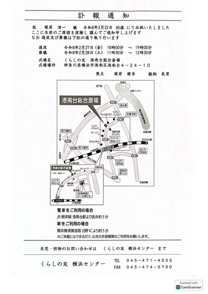 代表塚原淳一訃報に関するお知らせ